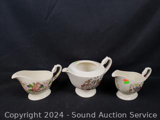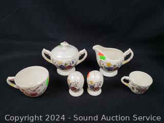 Cream/sugar, gravy boats, tea & demitasse cup & saucers, salt pepper, berry bowl, salt/pepper, teapot (no lid). Don't see any major issues.