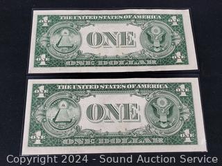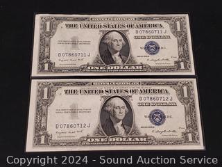 Lot #0135: 2 Uncirculated 1935 Sequential Order $1 Silver Certificates