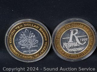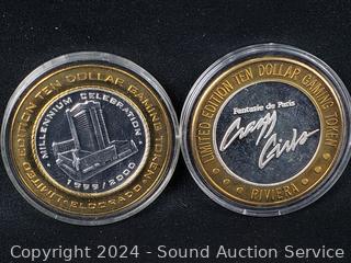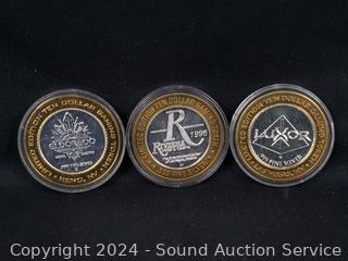 Lot #0140: (3) .999 Fine Silver Ten Dollar Gaming Tokens