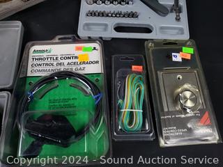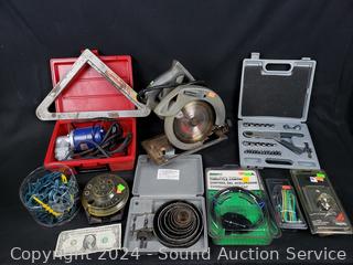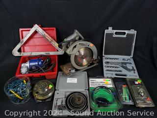 Craftsman Circular Saw, Hole Saw Kit, Ratcheting Socket Set, 12V Tire Inflator, Throttle Control, 4-Pole Trailer Wire Kit, Bit Set & More. Refer to photos for more details.