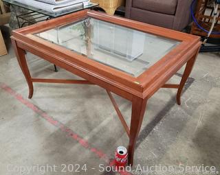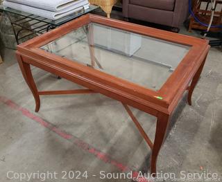 Lot #0301: Cherry Beveled Glass Top Coffee Table