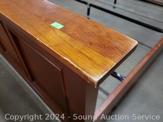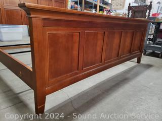 29.5" to 62" H x 79" to 83" W x 82" L Rails. Some minor scuffs, scrapes, mainly on corner of footboard.