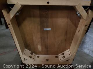 30" H x 48" x 36". Some minor scuffs, scrapes in finish, overall good condition. Made in Vietnam.