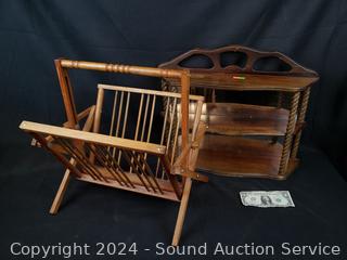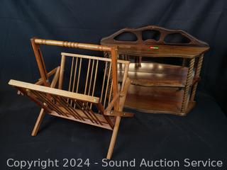Lot #0093: Folding Magazine Rack & Small Knick Knack Mirrored Shelf