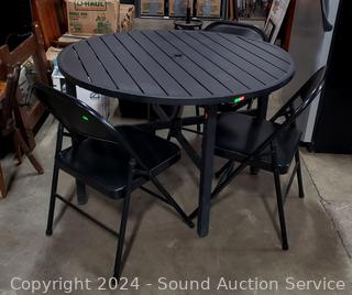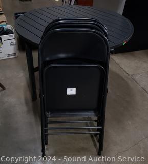 Lot #0019: Martha Living Black Steel Folding Table 3 3 Folding Chairs