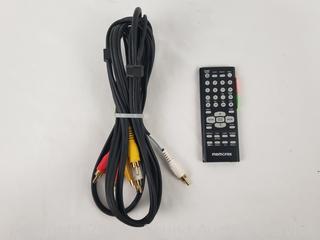 Comes with A/V cable. Model MVD2050-BLK. Has power, reads discs.
