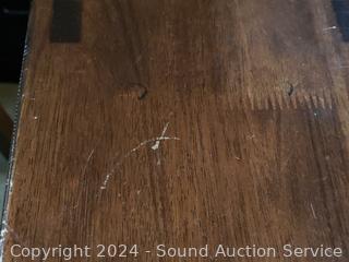 24" H x 17.75" x 9". Some minor scuffs, scratches.