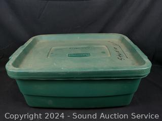Pink, yellow, green, blue. Some pieces are damaged, chipped. Rubbermaid tote w/lid included 8.5" x 14.75" x 21". Refer to photos for lot contents.