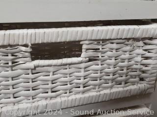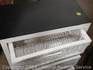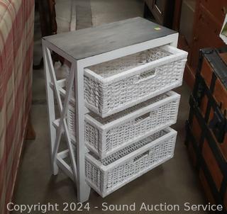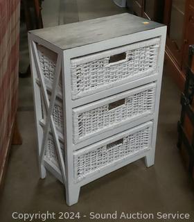 Lot #0021: White & Black Painted 3-Drawer Wood/Woven Chest