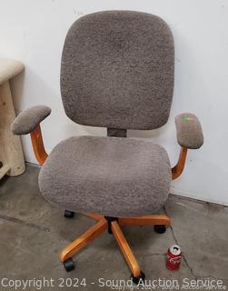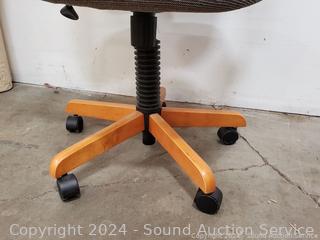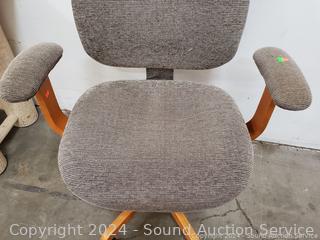 Lot #0008U: Wood Grain Finish Upholstered Rolling Adjustable Office Task Chair