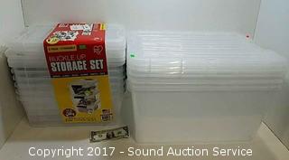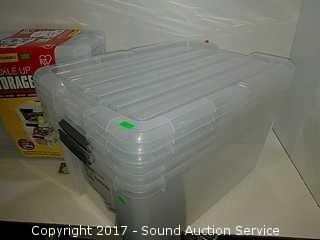 Lot #0015: (9) NEW Clear Plastic Storage Totes w/Lids