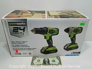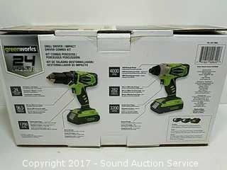 Lot #0253: *NEW Greenworks 24V Drill Driver/Impact Kit