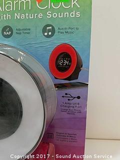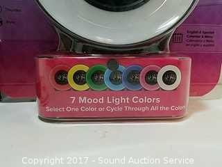 Picture frames by Parisian Home, 5" x 7". Alarm clock features 7 mood colors. Both are new.