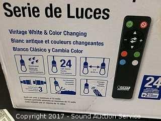 24 Light Sockets, Vintage White And Color Changing By Wireless Remote. Refer to photos for more information.