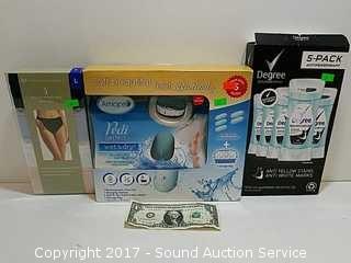 Auction is mostly retail items that are being liquidated, most items are new or like new in original packaging. Includes: Flashlights, Shop Lights, Jump Boxes, Conductive Gloves, Waterpik Flossers, Braun Shavers, String Lights, Pathway Lights, Magnifying Mirrors, Puck Lights, Eyeglasses, LED Desk Lights, Surveillance Cameras, Wahl Shavers, New Towels, Blankets. Pillows, Porch Lighting Lanterns, Tumbler Glasses, Silverware, Generators, Luggage & Much, Much, More! Please be sure to read descriptions and view all photos!