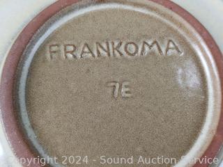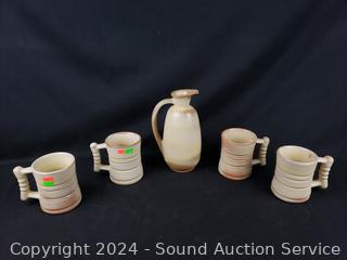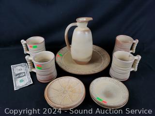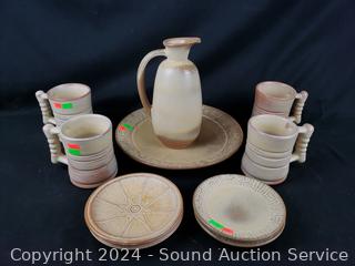 Lot #0087: 10pc Frankoma Pottery Mugs, Pitcher, Snack Plates, Charger