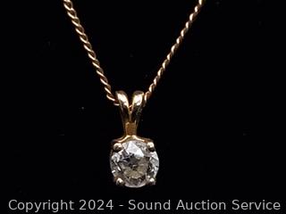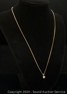 Lot #0124: 14K Gold 18" Chain Necklace w/Diamond Pendant