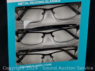 Lot #0308: 3 Foster Grant Metal +1.75 Reading Glasses w/1 Case