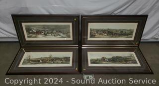 Framed, matted with glass. "Spring", "Summer", "Winter", "Fall". 20" x 37".