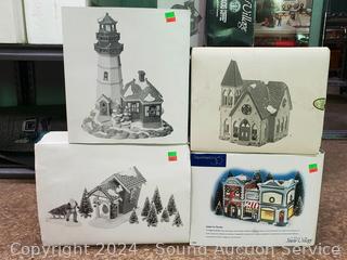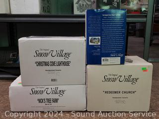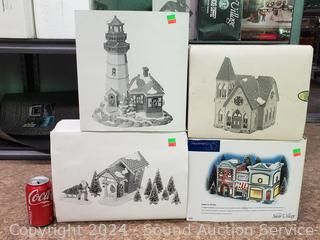 "Nick's Tree Farm", "Christmas Cove Lighthouse", "Center For the Arts", "Redeemer Church". All with original boxes.
