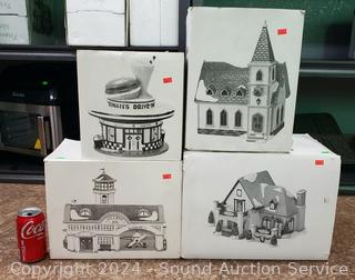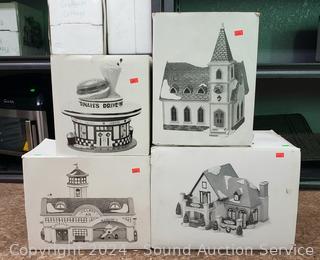 Lot #0276: 4pc Dept.56 Hand Painted Ceramic Snow Village Houses