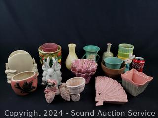 One piece is Roseville #59-6" Turquoise. Various signs of wear from use. Refer to photos for more details.