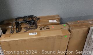 None are complete or have different color components. 4 boxes containing 4ft x 2ft x 3ft racks & hardware, 6 boxes containing 4ft x 2ft x 4ft racks & hardware 4 white, 6 gray. I'm sure with all these components at least a few could be completed.