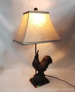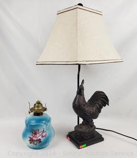 Lot #0079: Bronze Finish Composite Rooster 26" Table Lamp & Oil Lamp