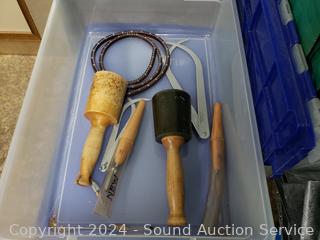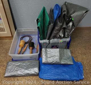 Lot #0247: Various Tarps, Wood Beaters, Calipers, Carving Blades