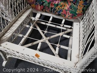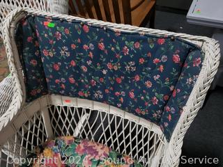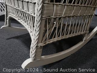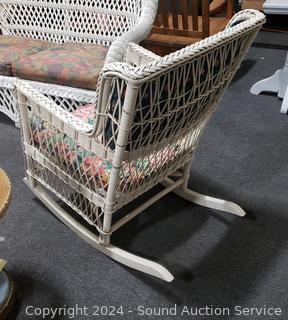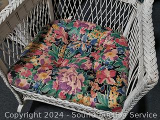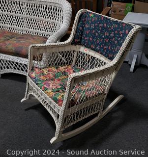 Lot #0008: Vintage White Wicker Floral Upholstered Rocking Chair