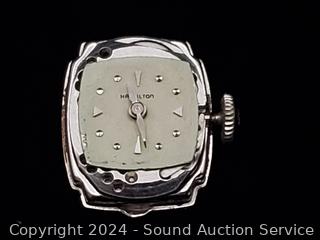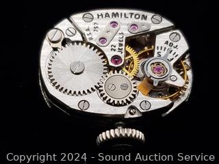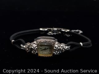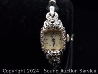 Lot #0126: Vtg. 22j 14K White Gold Diamond Bezel Case Ladies Watch