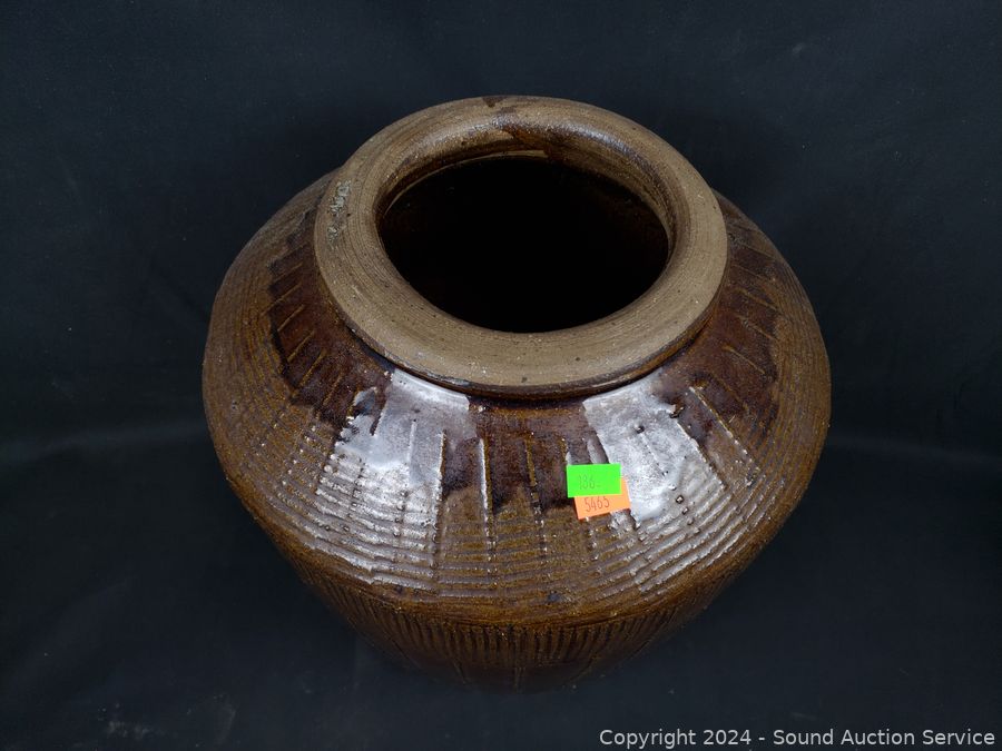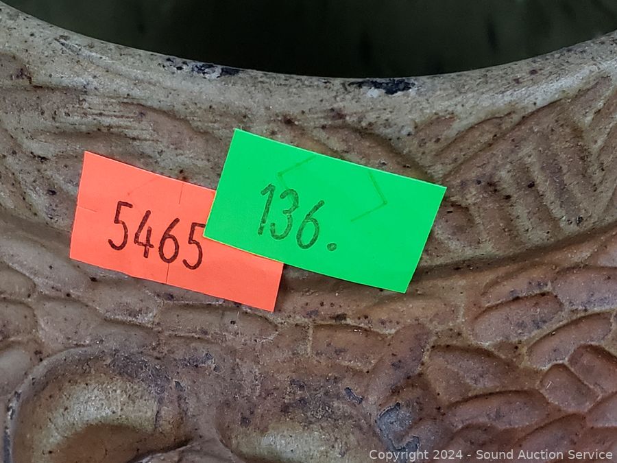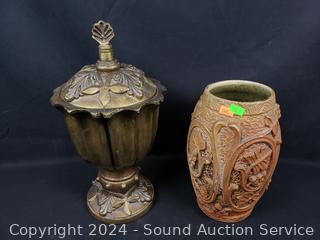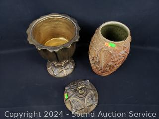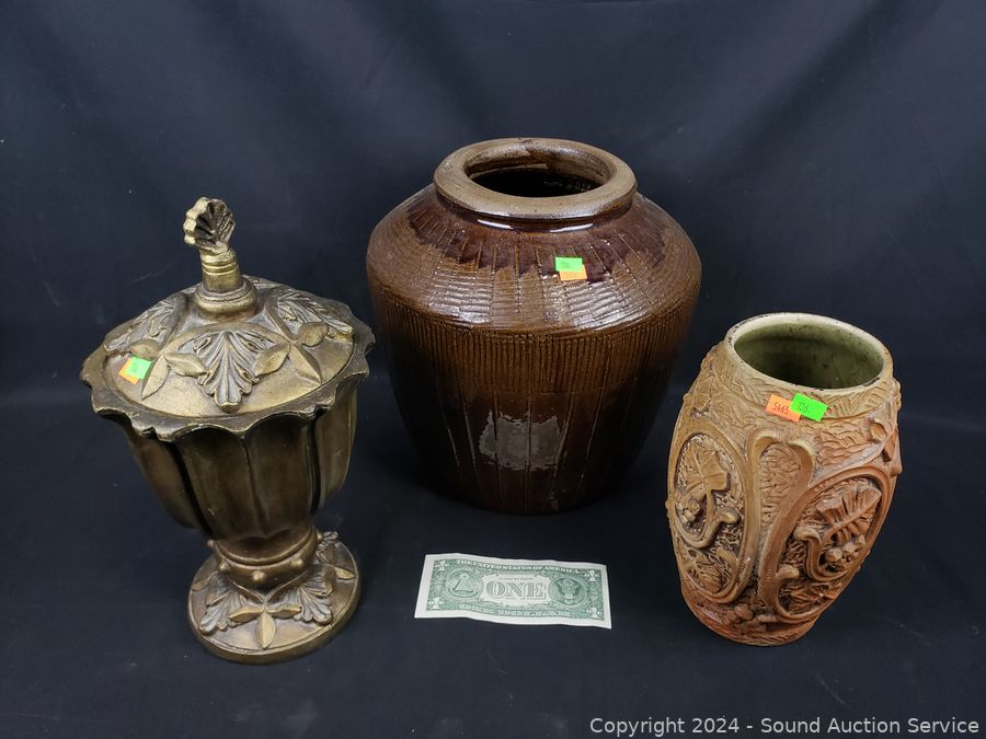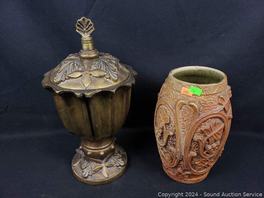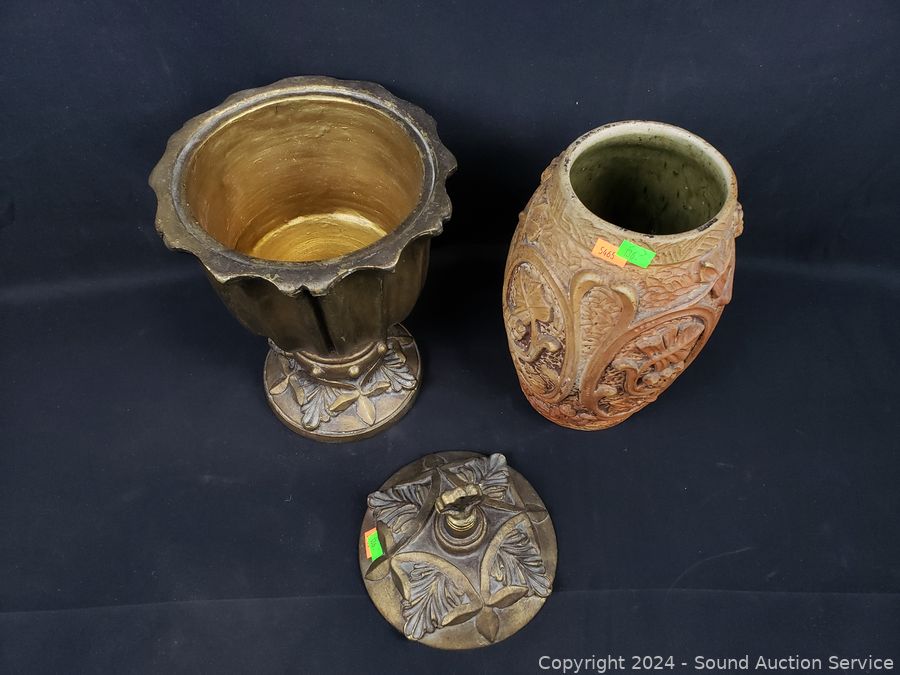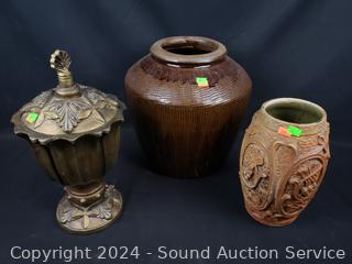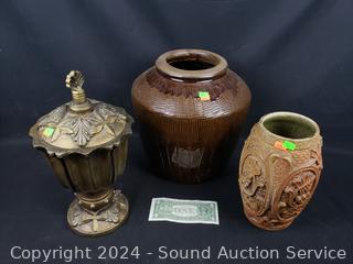 Lot #0136: 2 Pottery Vases & Composite Urn