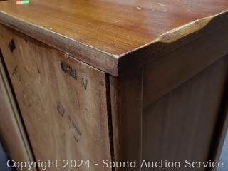 Some scuffs, scratches in finish. Appears to be all wood construction. 27" H x 13" W x 15"D.