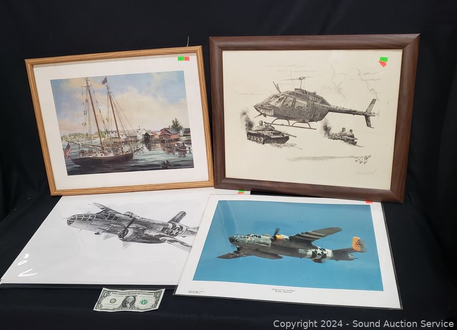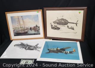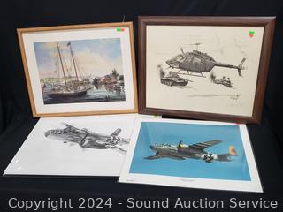 Lot #0079: 3 Military Aircraft & Sailboat Print Artwork