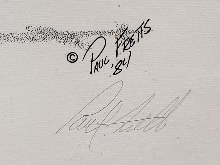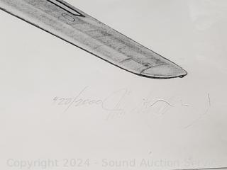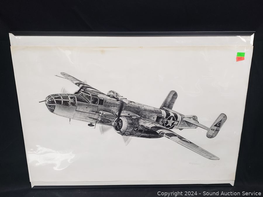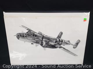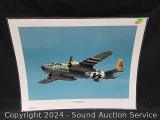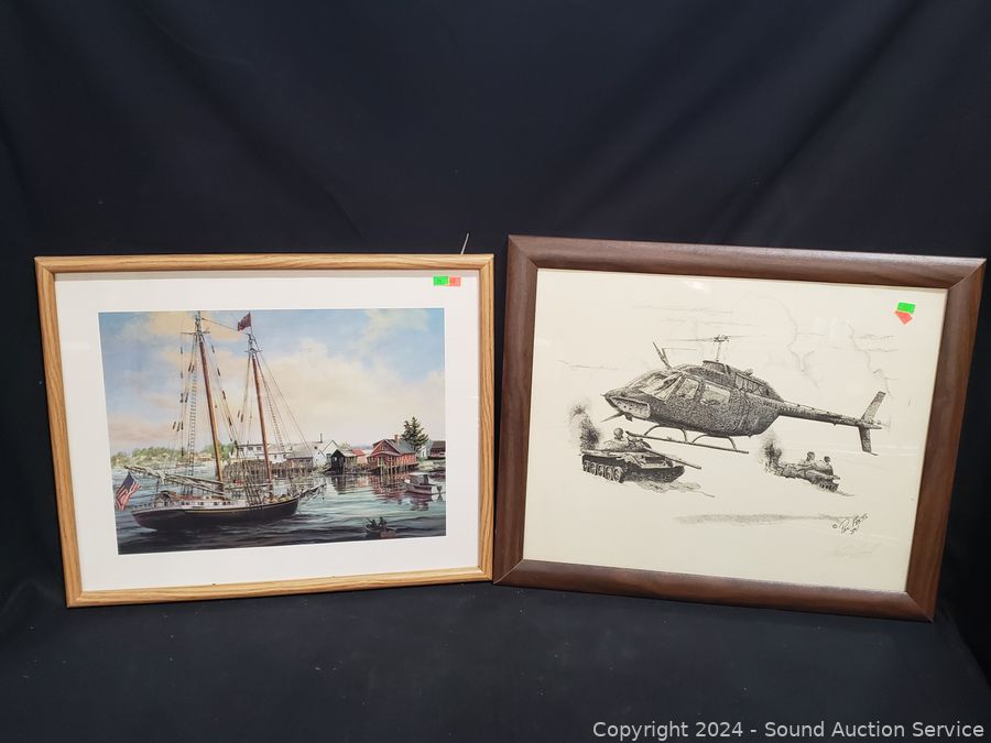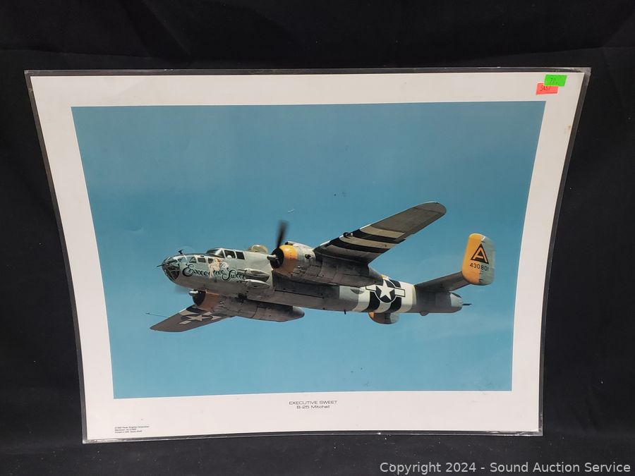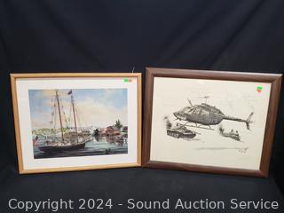Paul Frett's Helicopter, Jim Stoval #425/2000, Executive Sweet B-25 Mitchell. Don't see any signature on sailboat piece. Approx. 16" x 20" to 18" x 22".