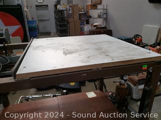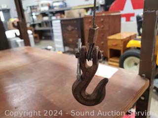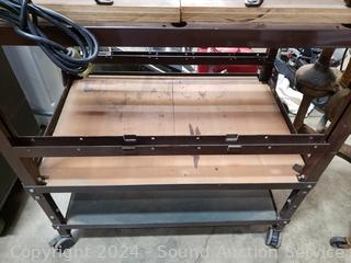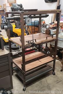 Lot #0017: 4-Tier Steel Rolling Utility Cart w/Mounted Elec. Hoist & Granite Slab