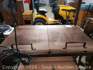 15" x 27" x 1" granite slab, 60" H x 35" x 24" cart. Winch appears to be functioning as intended.