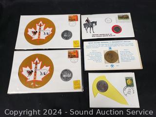 1971 British Columbia $1, 1971 British Columbia, 1973 Royal Canadian Police 25c, (2) 1974 100th Anniversary Winnepeg $1. ATTN: We are not coin or currency experts or graders, please use your own judgement when bidding.