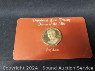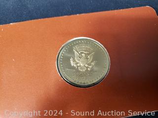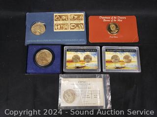 2 Nickel Series Sets, American Revolutionary Bicentennial medallion, Dept. of the Treasury Bureau of the Mint medallion, American Revolution Commemorative medallion. Collectors Society 24kt Gold Plate Kennedy Half Dollar. ATTN: We are not coin or currency experts or graders, please use your own judgement when bidding.