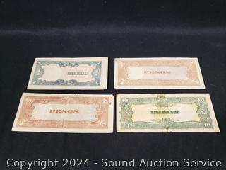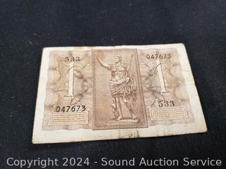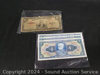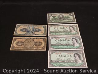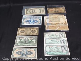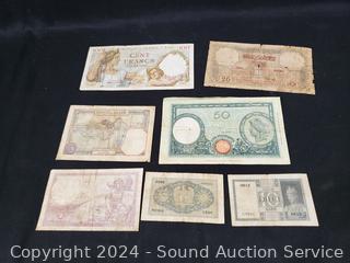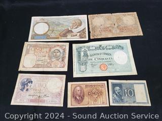 (4) Brasil $1 notes, (4) Japanese $1, $5 & $10 notes, 1954 Mexico $1, 1934 Cuba $1, 1934 Canada #1, (3) 1954 Canada $1, (7) Vintage France Francs 1933/1940 5$, 1939 $100, 1926 50 Lire. ATTN: We are not coin or currency experts or graders, please use your own judgement when bidding.