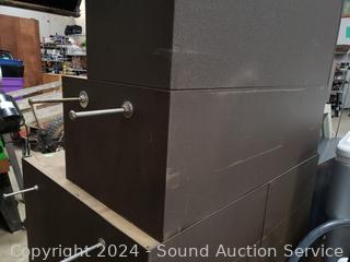 Comes with 4 keys. Felt lined drawers, ball bearing drawer guides. 57" H x 29" W x 13" to 20" D. Signs of wear from use, overall good condition.