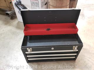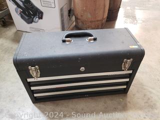 Lot #0054: Locking Black Steel 20" Toolbox & Other 19" Toolbox w/Tools