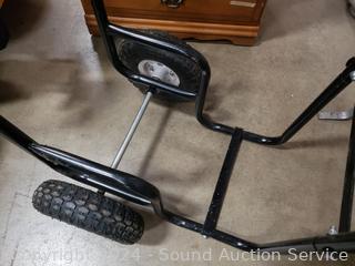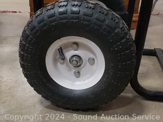 Approx. 42" H x 20.5" x 13" Rack. 10" inflatable tires, appear to be holding air.