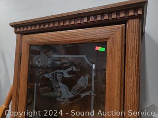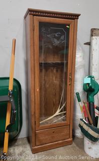 Lot #0049: Simulated Oak Finish Locking Gun Cabinet