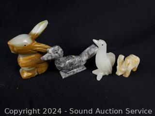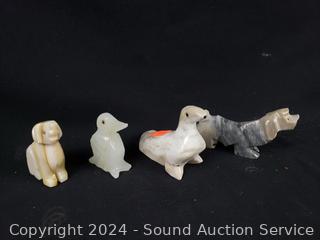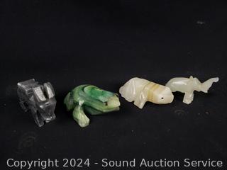 burro, Dogs, Birds, Vases, Rabbit, Elephant, Box, Fish, Runner, Frogs. Approx. 1.75" to 5" tall.