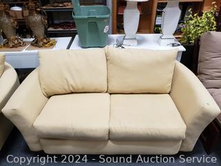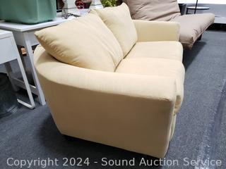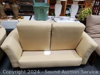 Lot #0002: Rowe Furn. Interline Ivory/Yellow Upholstered Loveseat