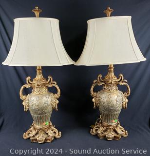 Lot #0104: Pair of Ornate Composite 37" Table Lamps