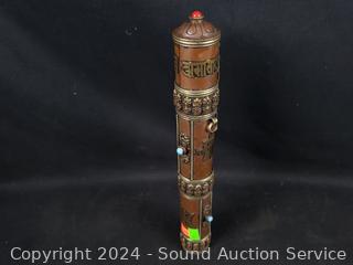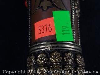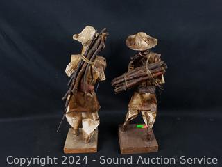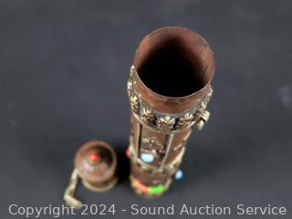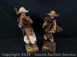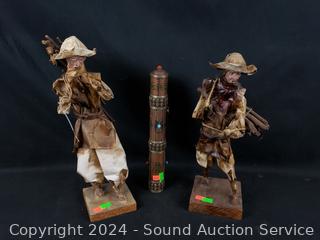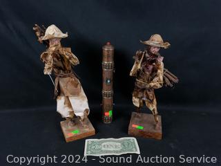 Lot #0119: Copper Incense Canister & 2 Handcrafted Paper Mache Figures