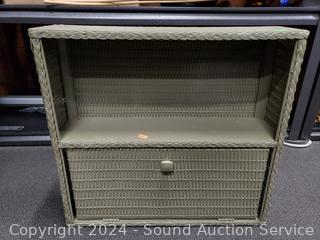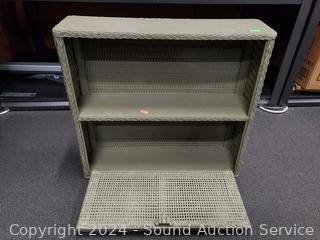 18" H x 15.5" W x 6" D & 17.5" H x 19" x 5.5" wicker shelves.