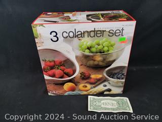 Lot #0252: 3pc Miu Stainless Steel Colander Set